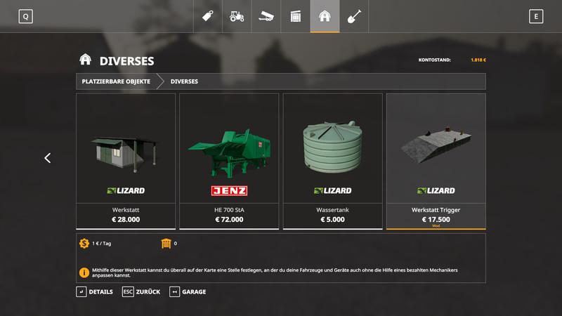 FS19: Workshop Trigger v 1.0.1.0 Placeable Objects Mod für Farming ...